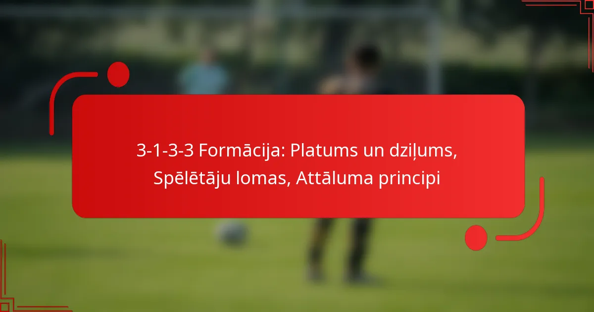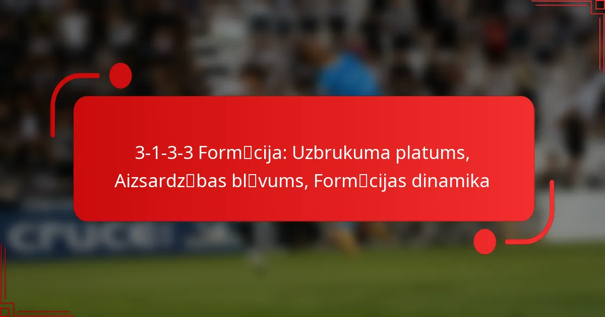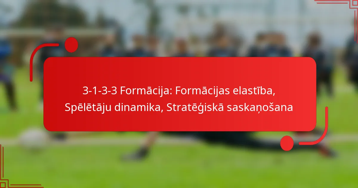 3-1-3-3 formācija ir taktiska izkārtojuma veids futbolā, kas uzsver spēcīgu viduslīnijas klātbūtni, vienlaikus saglabājot aizsardzības stabilitāti un uzbrukuma iespējas. Šī formācija piedāvā ievērojamu elastību, ļaujot komandām pielāgot savu struktūru atkarībā no spēles plūsmas un pretinieku stratēģijām, nodrošinot dinamisku pozicionēšanu un taktiskus maiņas. Balansējot aizsardzības un uzbrukuma lomas, spēlētāji var efektīvi sadarboties, lai reaģētu uz dažādām spēles situācijām.