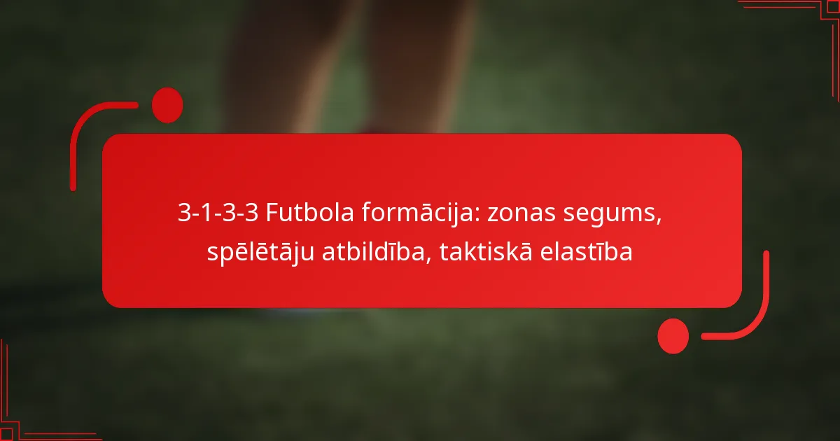3-1-3-3 futbola formācija ir taktiska izkārtojuma veids, kas līdzsvaro aizsardzības spēku ar uzbrukuma daudzveidību. Izmantojot trīs aizsargus, vienu defensīvo pussargu, trīs pussargus un trīs uzbrucējus, šī formācija ļauj komandām efektīvi segt zonas laukumā, vienlaikus saglabājot vienotu stratēģiju. Katram spēlētājam noteiktās atbildības uzlabo kopējo komandas sniegumu, veicinot efektīvu komunikāciju un komandas darbu.
